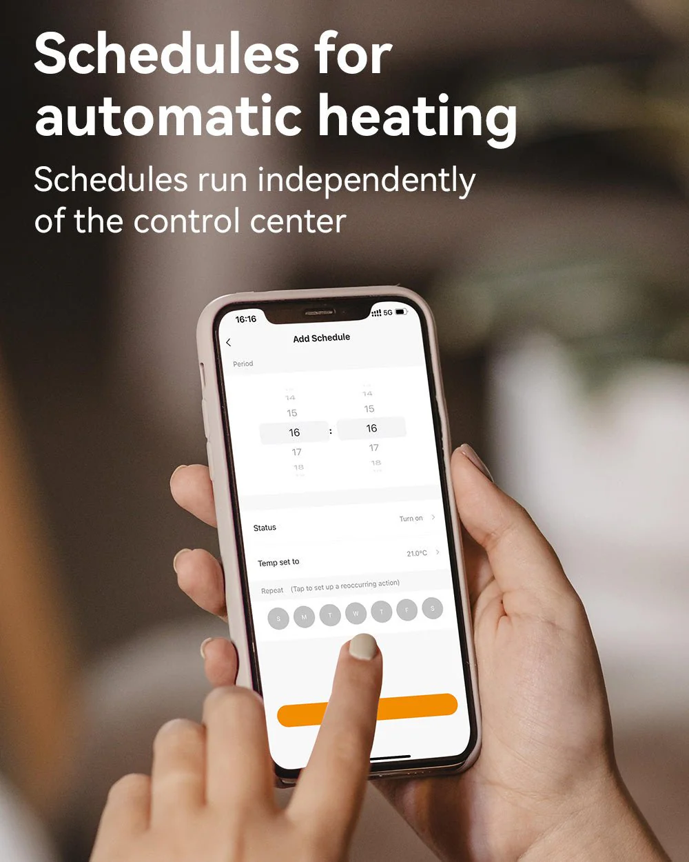 Dites au revoir à rentrer chez vous dans une maison froide. Lorsque vous activez la fonction de géolocalisation, le système détecte automatiquement lorsque vous vous approchez de chez vous (dans un rayon allant jusqu'à 1 km) et démarre le chauffage de manière préventive. Au moment où vous franchissez la porte, la chaleur a déjà envahi la pièce, vous permettant de profiter d'un environnement domestique confortable même par temps froid.